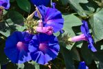 The bright blue blossoms create an interesting contrast to the green of the trees. The whole path in general is hemmed by blossoms in bright colours.