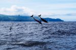 En fonction de la saison, différentes espèces de dauphins peuvent être observées. Les plus courants sont les grands dauphins, comme sur cette photo, et les dauphins bridés, également connus sous le nom de dauphins tachetés de l’Atlantique. Les excursions d’observation de ces mammifères marins sont disponibles à São Miguel toute l’année, bien qu’en dehors de la saison, les autres petits opérateurs ou les points de départ des petites villes soient fermés. Vous devez toujours prendre en compte le fait que les bateaux restent au port en cas de mauvais temps. Par conséquent, il est conseillé de ne pas planifier l’observation des baleines à la toute fin des vacances. Il est également judicieux de décider à l’avance si vous préférez une excursion en canot pneumatique rapide ou en catamaran. Dans le bateau rapide, vous atteindrez les lieux un peu plus rapidement, dans le catamaran, vous rejoindrez votre destination de façon plus calme. En revanche, dans bateau rapide, vous serez mouillé même avec peu de vagues, alors que dans le catamaran, vous n’aurez même pas à porter de gilet de sauvetage.n.