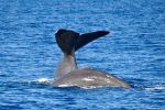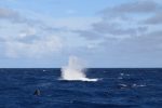 À proximité des Açores, vous est offerte une opportunité particulière. En effet, les baleines et les dauphins peuvent être observés non seulement pendant leur migration à travers les océans, mais un certain nombre d’espèces passent toute l’année aux Açores. Les cachalots et les dauphins en particulier peuvent être observés toute l’année. Mais aussi les baleines de passage aux Açores deux fois par an, au printemps et en automne, peuvent, avec un peu de chance, être également observées pendant la saison estivale, comme ici un groupe de rorquals boréaux de passage en août 2018 au large de São Miguel.