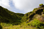 Le chemin est maintenant aussi nettement plus petit, mais n’est plus aussi raide. Le chemin est plutôt calme, traverse encore et encore de petits cours d’eau qui tombent dans la vallée et permet parfois plus, parfois moins, une vue sur la vallée. Au début, la végétation est assez dense, mais le chemin s’ouvre après un peu plus d’un kilomètre. Là, il coule à ciel ouvert dans une vallée entre les pentes des montagnes qui bordent le Lagoa do Fogo.
