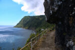 Nesta curta caminhada gostaríamos de levar-vos à Fajã do Araújo, uma fajã bastante remota na costa leste de São Miguel. A caminhada começa na Pedreira e percorre uns bons 4 km ao longo da costa até à Fajã do Araújo e de volta à Pedreira. Se quiser, pode continuar para a Praia do Lombo Gordo, que acrescenta mais 2 km ao percurso. Note, no entanto, que o caminho nesta secção já derrocou há alguns anos, mas falaremos mais sobre isso depois. O melhor ponto de partida é no grande parque de estacionamento em frente à igreja da Pedreira. O trilho tem início no final da estrada que passa pela igreja