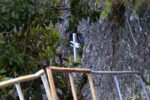 A cerca de meio caminho, atravessa-se o leito de um rio, que, no entanto, nunca teve água quando aqui estive. Depois disso, o caminho continua a descer, protegido por grades. Não me apoiaria neles, como se nota, pelas proteções anteriores, que estas são frágeis. Mais ou menos no mesmo ponto passará também pelas cruzes, que relembra novamente a ter cuidado durante o percurso.