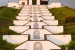 Em frente ao miradouro, a escada decorada com imagens cristãs nos azulejos típicos azuis sobe vários Em frente ao miradouro, a escada decorada com imagens cristãs nos azulejos típicos azuis sobe vários degraus até à capela propriamente dita. O caminho para cima é emoldurado com hortênsias e outros arbustos e plantas.