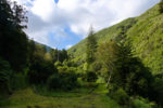 Der Weg führt dann in Serpentinen hinunter bis zur Ribeira do Guilherme. Erst haben Sie vom Weg aus die Gipfel des Pico da Vara vor sich, später können Sie den Flusslauf im Tal sehen.